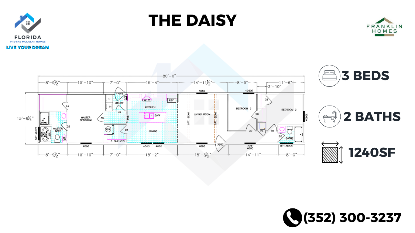 The Daisy, brought to you by Franklin Homes, embodies efficient design paired with contemporary elegance. This charming prefab modular home features three cozy bedrooms and two full bathrooms, encapsulated within a compact yet comfortable 1,240 square feet of living space. Perfect for those who value both functionality and style, The Daisy offers a thoughtfully designed layout that maximizes every inch of space, providing a warm and inviting environment that feels much larger than its footprint suggests. Experience the perfect blend of modern amenities and timeless appeal with The Daisy.