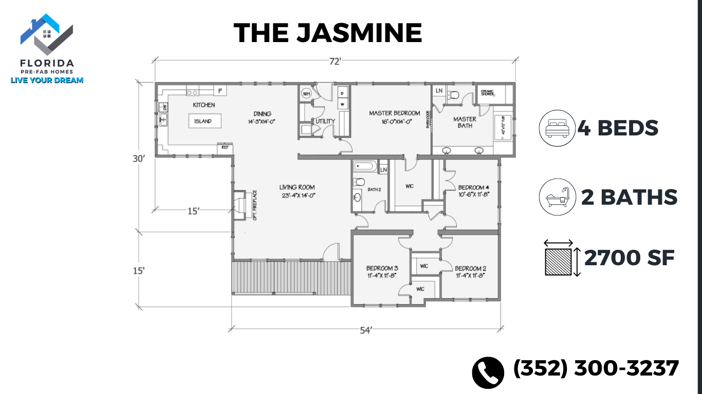 The Jasmine by Franklin Homes is a spacious modular home spanning 2700 square feet, offering ample room for comfortable living. With 4 bedrooms and 2 bathrooms, it combines modern design with practicality, providing a cozy yet functional living space for families seeking comfort and style.