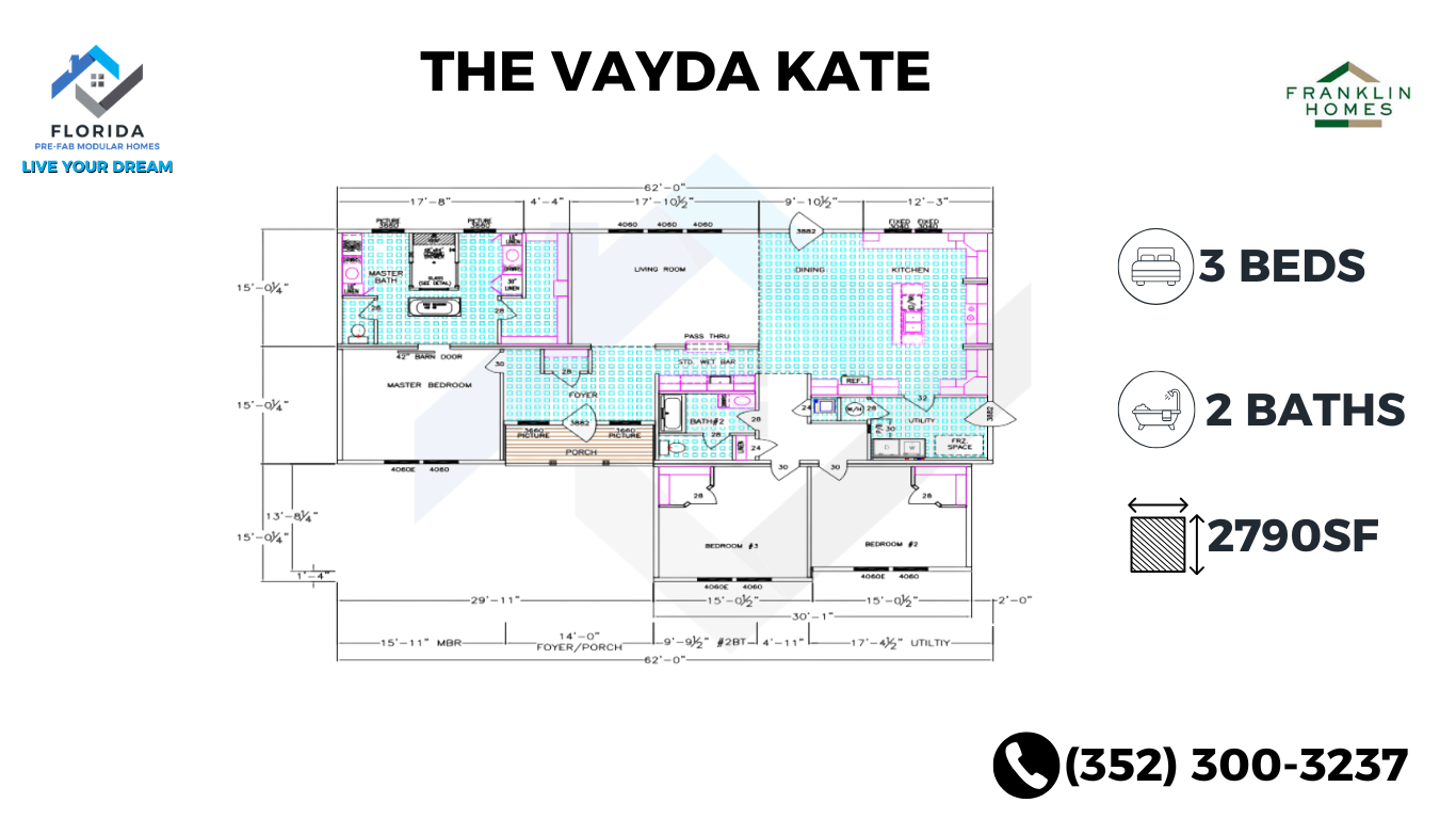 The Vayda Kate epitomizes the ultimate in luxury and spacious living, crafted by Franklin Homes. This exquisite home boasts three bedrooms and two bathrooms, spread across an impressive 2,790 square feet of high-end living space. Designed with a focus on grandeur and practical elegance, it features expansive, open areas perfect for entertaining and family gatherings, as well as quiet, private spaces for relaxation and tranquility